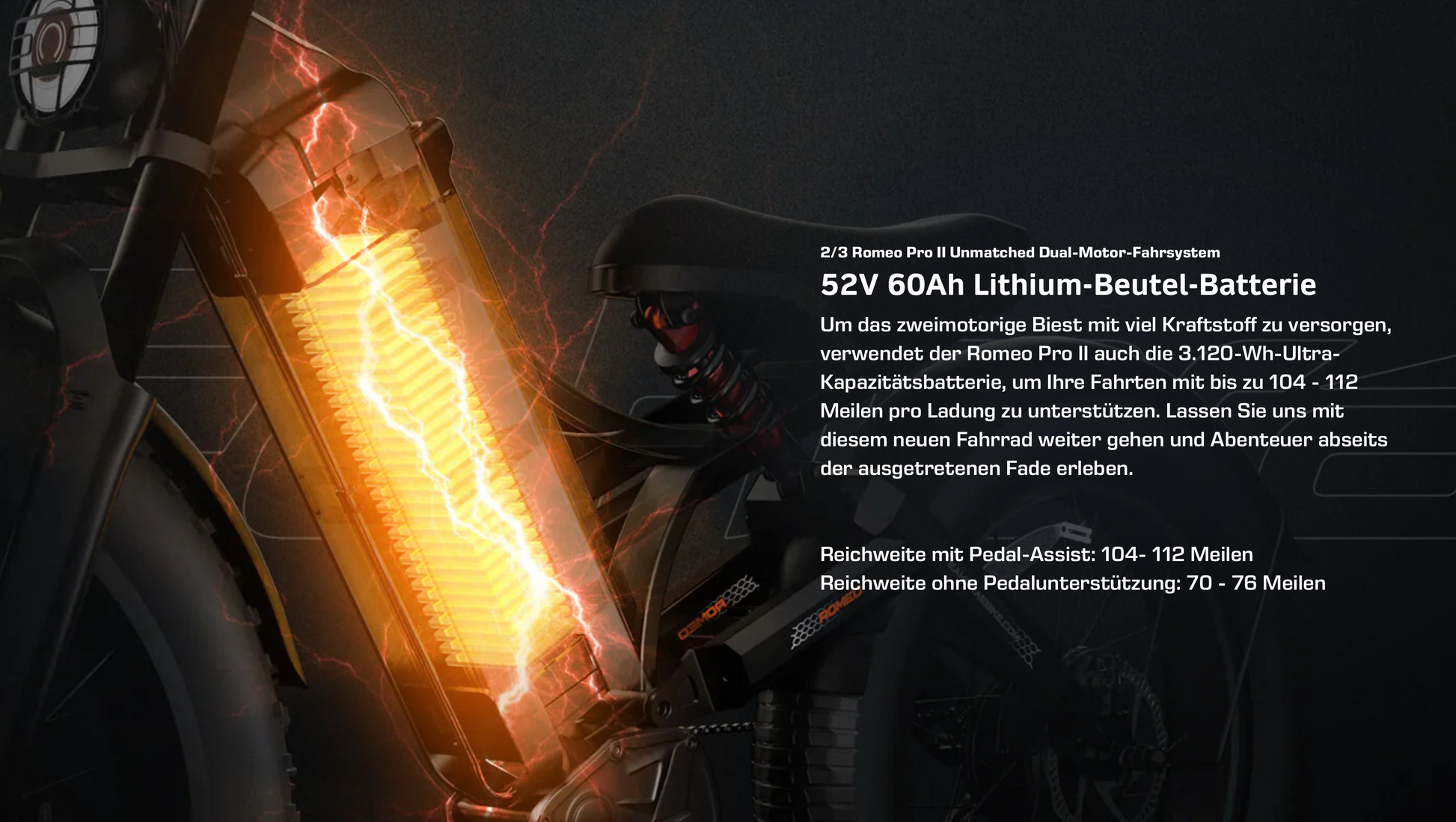- 3,120 Watt Hours (52V 60Ah)